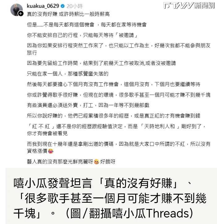 然而艺人嘻小瓜就为其辩护,说“艺人真的没有很好赚,很多歌手甚至一个月才能赚几千块钱”!