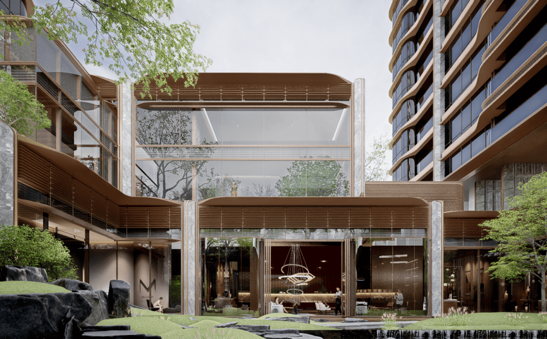 最让人印象深刻的,要数宸嘉对架空层和会所的巧思,将江南园林中檐下空间、廊道等经典元素融入设计之中
